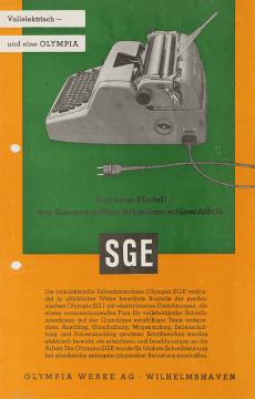 Prospekt für elektrische Schreibmaschine Olympia SGE Das neue Modell aus Europas größter Schreibmaschinenfabrik Datum handschriftlich vermerkt
