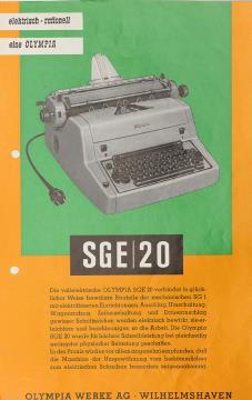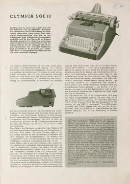 Prospekt für elektrische Schreibmaschine Olympia SGE 10 Nr. WLS 525/G