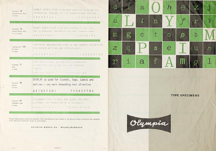 Schriftartenverzeichnis für Schreibmaschine Olympia Nr. 1/13/004/10/B