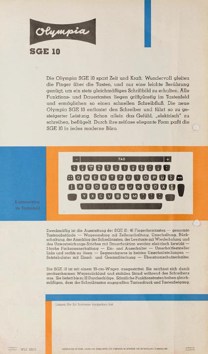 Prospekt für elektrische Schreibmaschine Olympia SGE 10 Nr. WLS 525/G