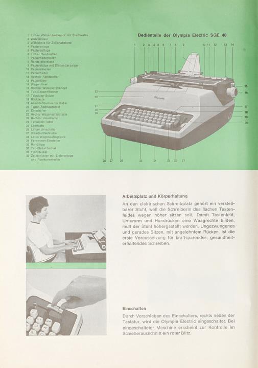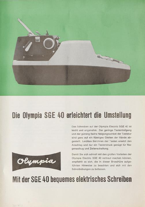 Prospekt für Schreibmaschine Olympia SGE 40 Mit der SGE 40 bequemes elektrische Schreiben Nr. 5/01/044/01/C