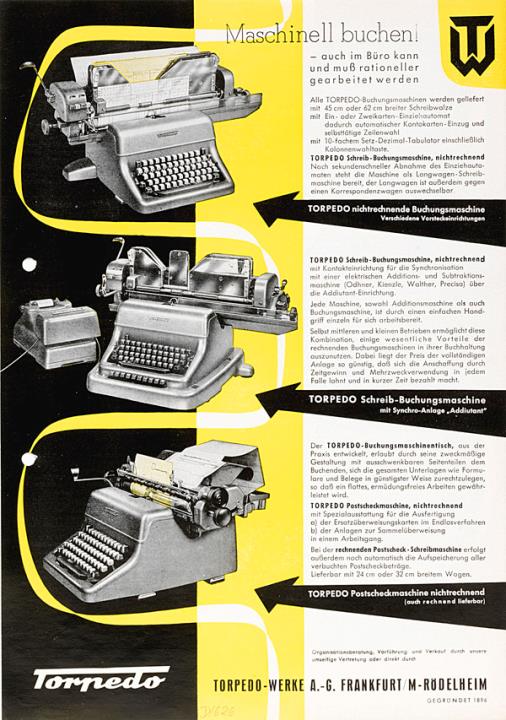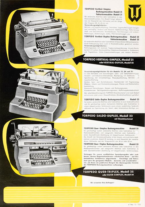 Prospekt für Schreib- und Buchungsmaschinen Torpedo Nr. d114a.70.1255