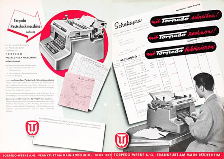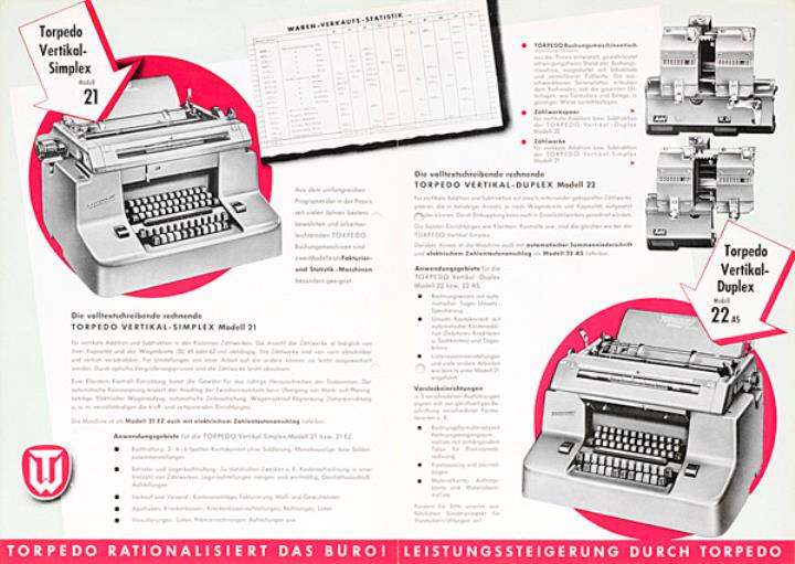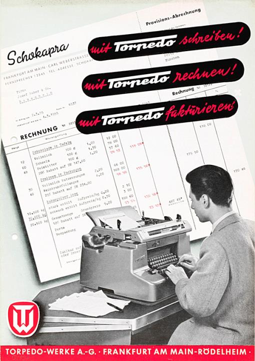 Faltprospekt für Schreib- und Fakturiermaschinen Torpedo mit Torpedo rechnen! mit Torpedo fakturieren! Nr. d124.20.1155