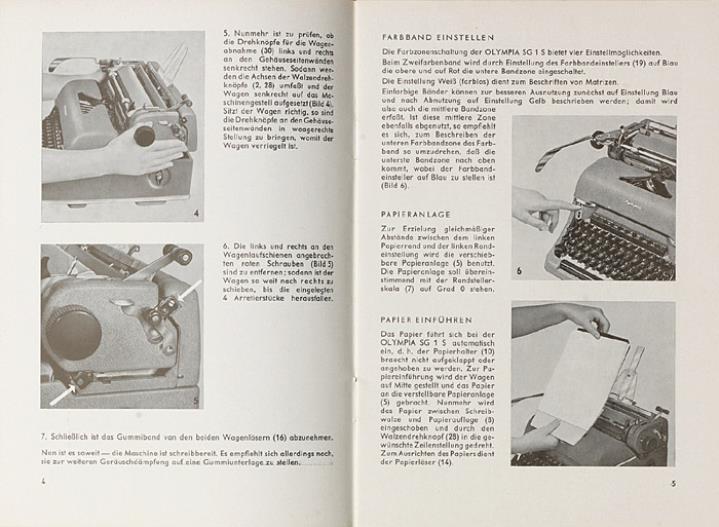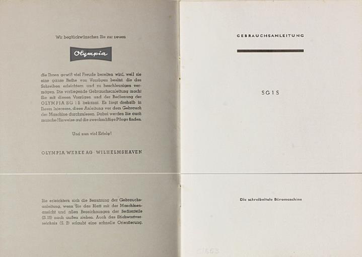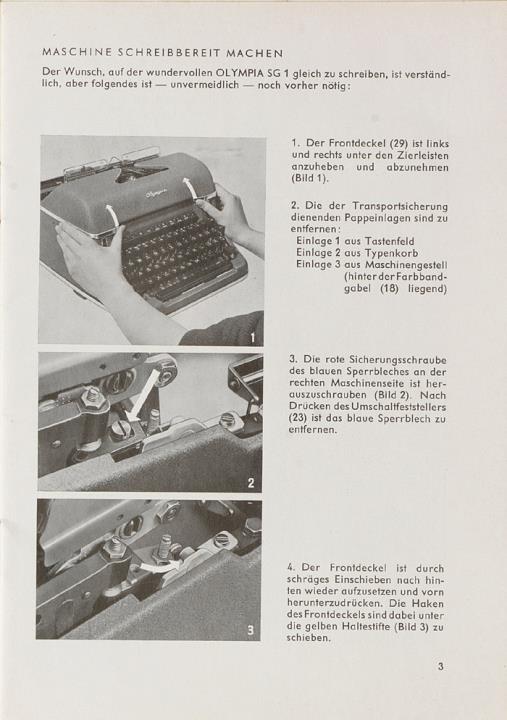 Bedienungsanleitung für Schreibmaschine Olympia SG 1 S Nr. 1/12/020/01