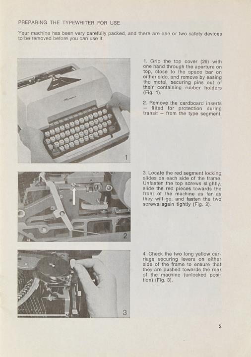 Bedienungsanleitung für Schreibmaschine Olympia SG 3 De Luxe Nr. 1/21/030/J