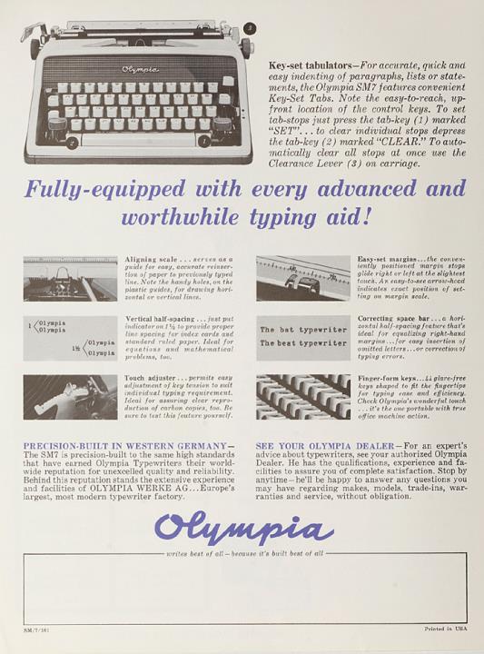 Prospekt für Schreibmaschine Olympia SM 7 Nr. SM/7/161