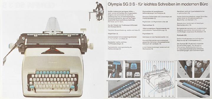 Faltprospekt für Schreibmaschine Olympia SG 3 S Nr. 1/21/002/01