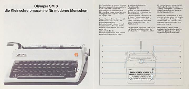 Faltprospekt für Schreibmaschine Olympia SM 8 Nr. 1/31/001/01