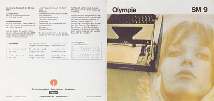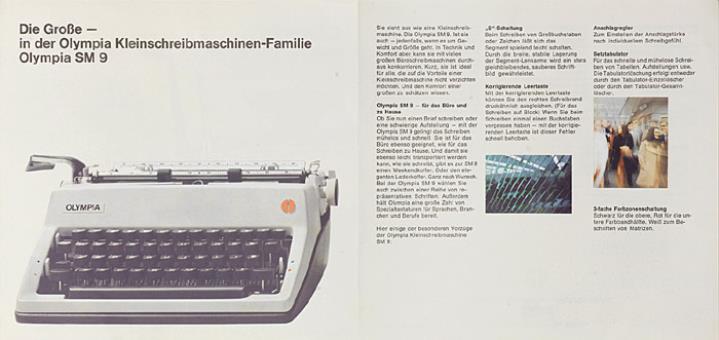 Faltprospekt für Schreibmaschine Olympia SM 9 Nr. 1/31/008/01/C