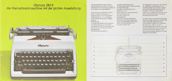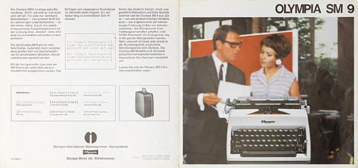 Faltprospekt für Schreibmaschine Olympia SM 9 Nr. 1/31/008/01