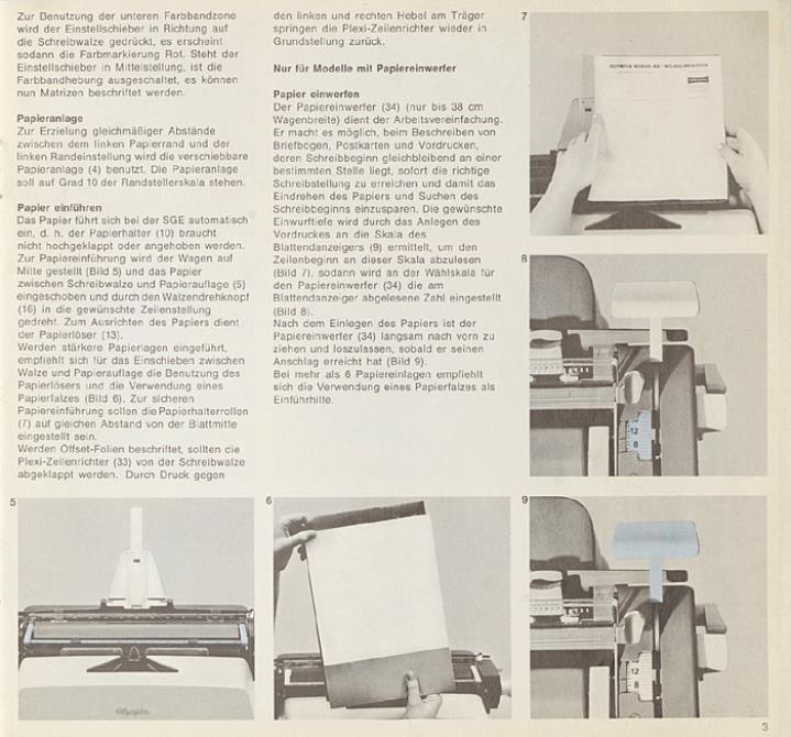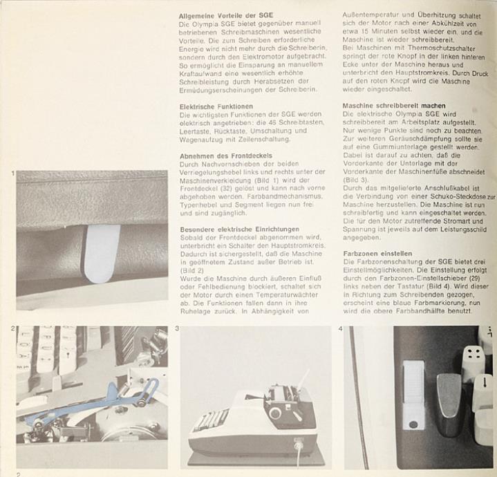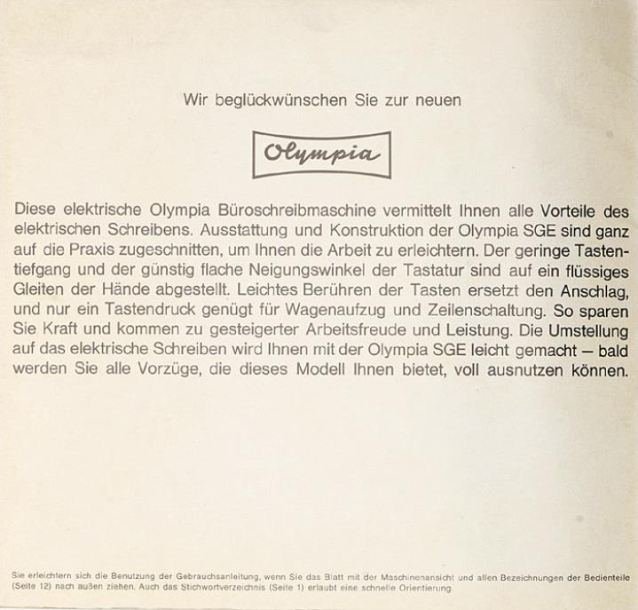 Bedienungsanleitung für elektrische Schreibmaschine Olympia SGE Nr. 1/22/039 Jahreszahl handschriftlich auf Prospekt vermerkt