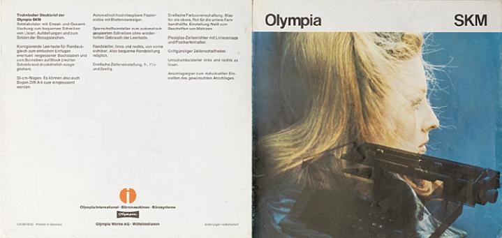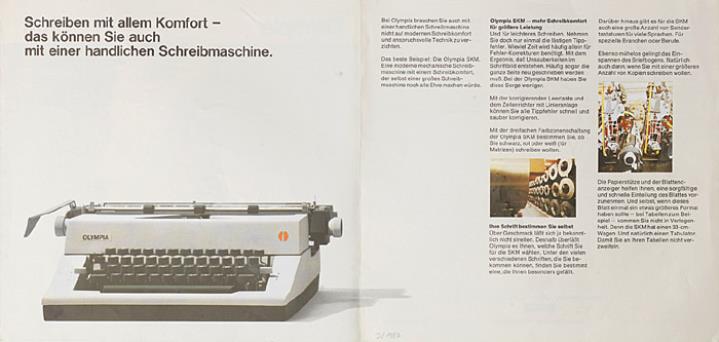Faltprospekt für Schreibmaschine Olympia SKM Nr. 1/21/001/01/C