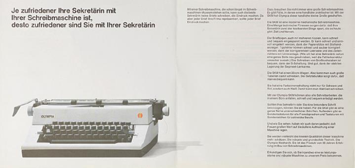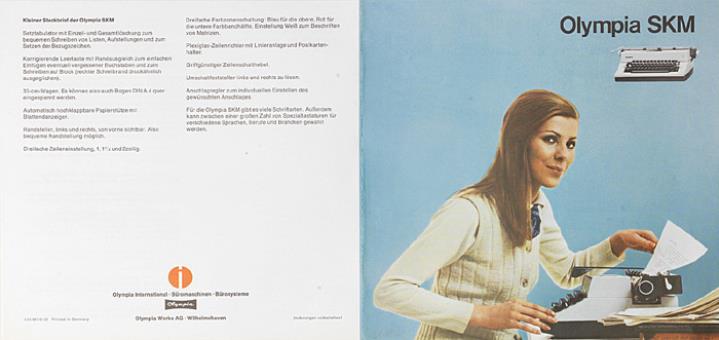 Faltprospekt für Schreibmaschine Olympia SKM Nr. 1/21/001/01/D