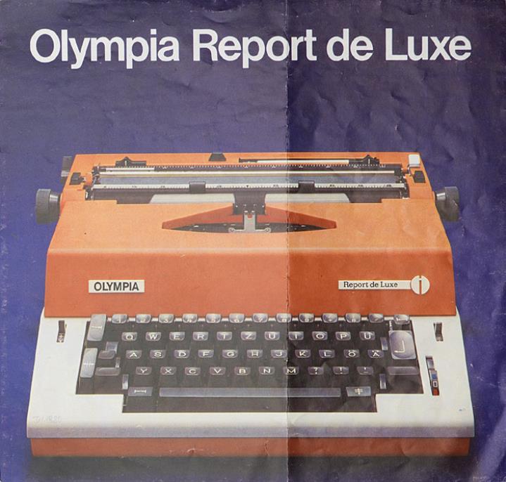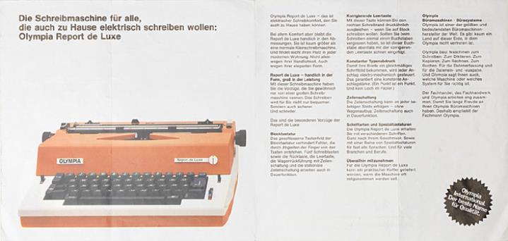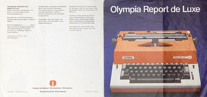 Faltprospekt für elektrische Schreibmaschine Olympia Report de Luxe Nr. 1/22/003/01
