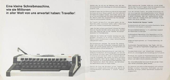 Faltprospekt für Reiseschreibmaschine Olympia Traveller Nr. 1/32/004/01
