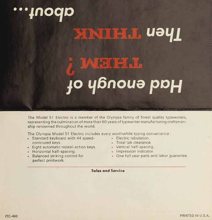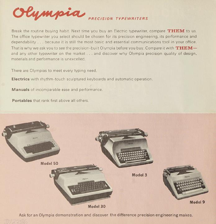 Faltprospekt für Schreibmaschine Olympia Nr. ITC-460