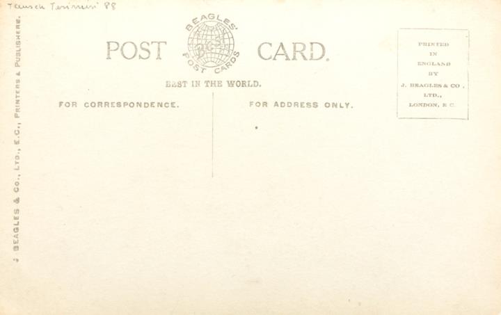 Illustrierte Postkarte; Fotografie, monochrom; J.B. & Co. Nr. 389.H Rückseite: Rollenporträt; Schauspielerin Hilda Trevelyan mit Schreibmaschine; Vorderseite nicht beschrieben