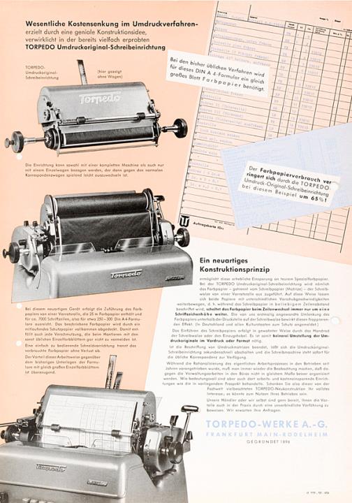 Erhebliche Kostenersparnis durch die Torpedo Umdruckoriginal-Schreibeinrichtung