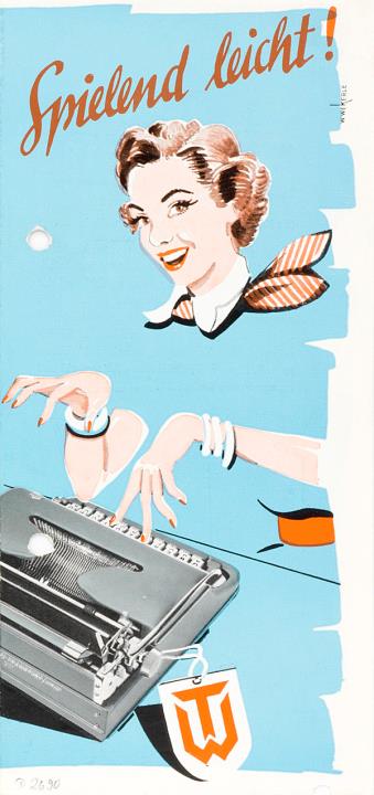 Next to literature on the history of technology, of the typewriter and the office, the Archive holds patent letters, textbooks and instruction manuals as well as historical postcards, letters, photographs and various kinds of advertising (leaflets and brochures, advertising stamps, newspaper ads, posters and signs, promotional gifts).