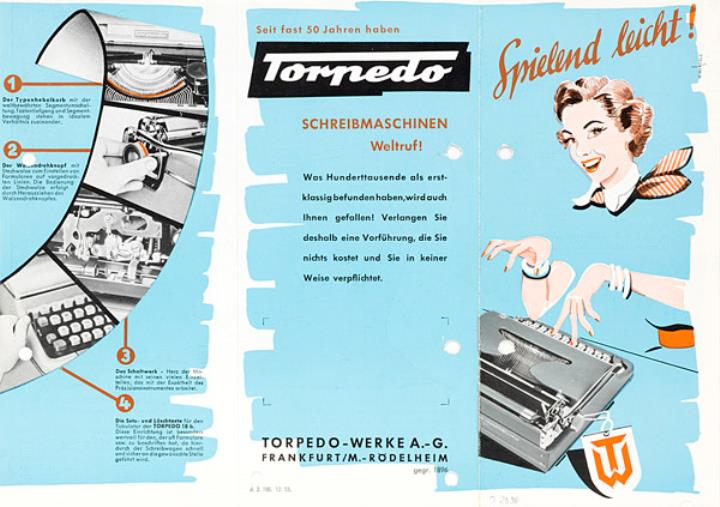 Faltprospekt für tragbare Schreibmaschine Torpedo 18 Nr. d.2.100.12.53