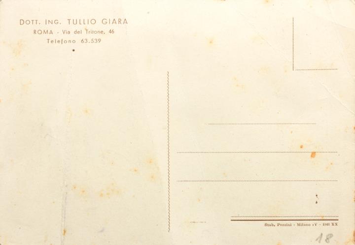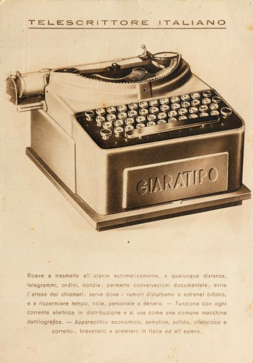 Werbepostkarte; Grafik, monochrom Rückseite: Fernschreiber Giaratipo, Werbetext Vorderseite nicht beschrieben