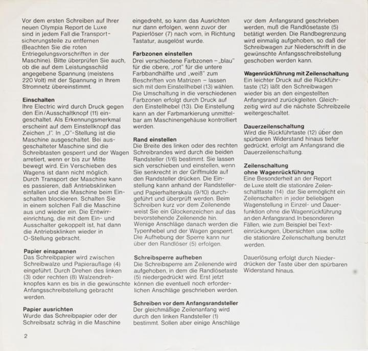 Bedienungsanleitung für Schreibmaschine Olympia Report De Luxe Nr. 1/22/036 01