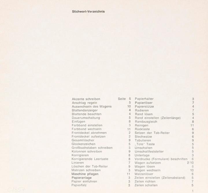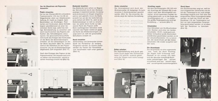 Bedienungsanleitung für Schreibmaschine Olympia SG 3 Nr. 1/21/031/E 01 Jahreszahl handschriftlich auf Prospekt vermerkt