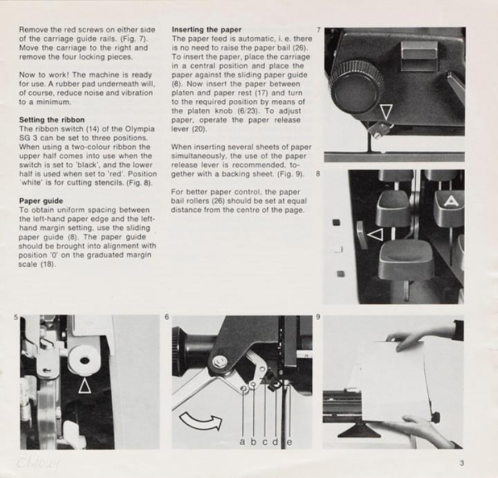 Bedienungsanleitung für Schreibmaschine Olympia SG 3 Nr. 1/21/031 10