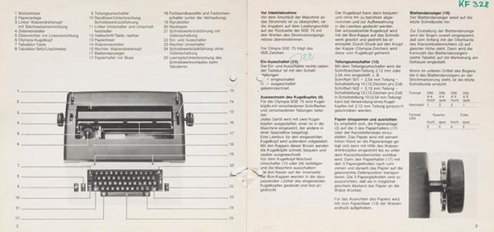 Bedienungsanleitung für elektrische Schreibmaschine Olympia SGE 75 Nr. 1/22/041 01