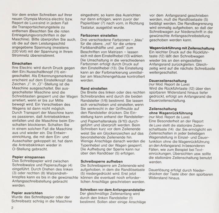 Bedienungsanleitung Olympia Monica Electric Olympia Report De Luxe
