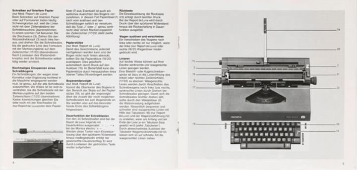 Bedienungsanleitung für elektrische Schreibmaschine Olympia Monica und Olympia Report De Luxe Nr. 1/22/035 01