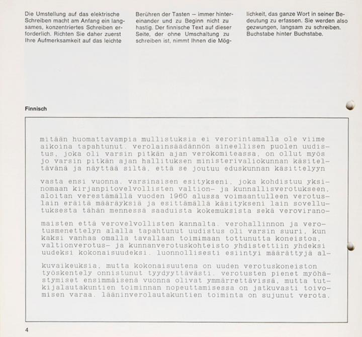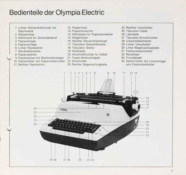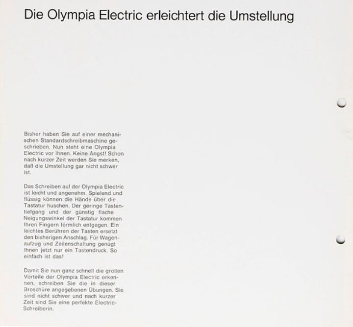 Prospekt mit Schreibanleitung und Übungstexten für elektrische Schreibmaschine Olympia Nr. 5/01/044/C1