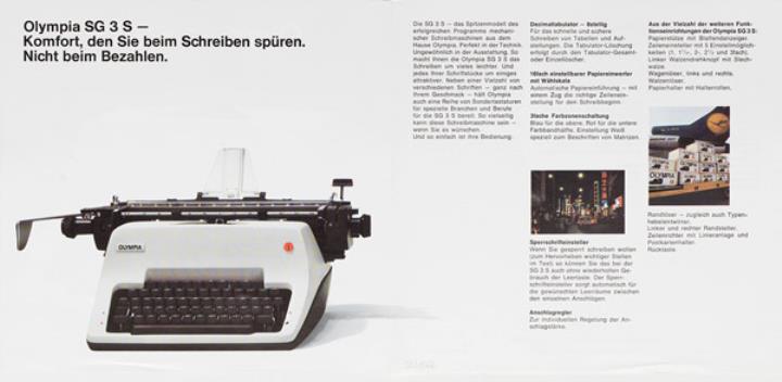 Faltprospekt für Schreibmaschine Olympia SG 3 S Nr. 1/21/002/01/G