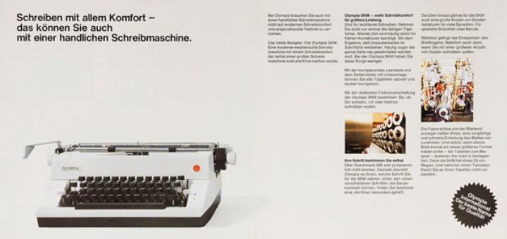 Faltprospekt für Schreibmaschine Olympia SKM Nr. 1/21/001/01/H