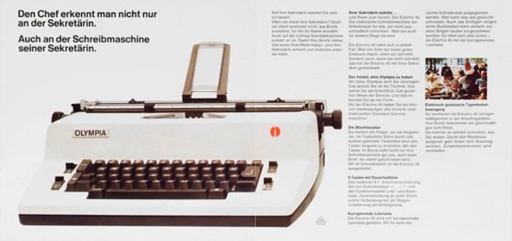 Faltprospekt für elektrische Schreibmaschine Olympia 45 Nr. 1/22/004/01