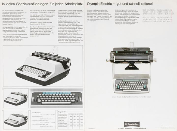 Faltprospekt für elektrische Schreibmaschine Olympia SGE 40 Nr. 1/22/002/01/C