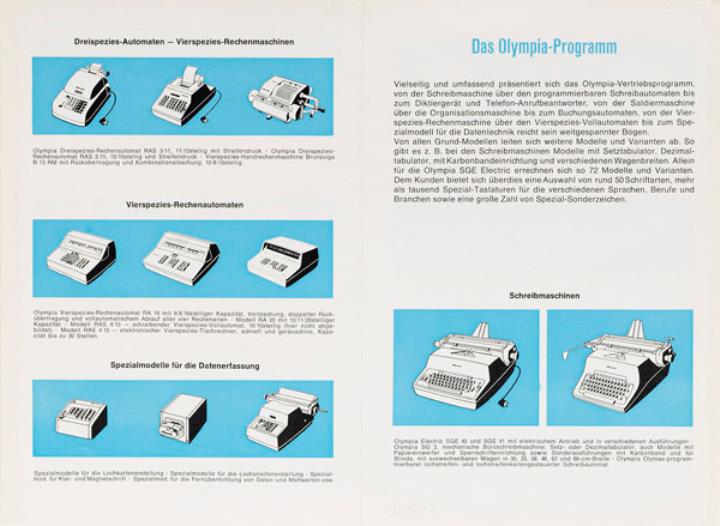 Faltprospekt für Schreib- und Büromaschinen Olympia