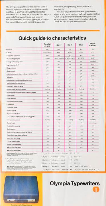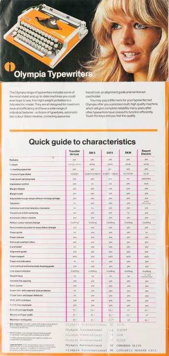 Faltprospekt für Schreibmaschine Olympia