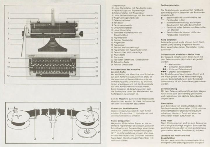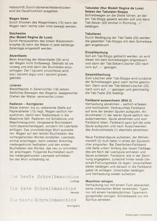 Bedienungsanleitung dreisprachig für Schreibmaschine Olympia Regina Nr. 1/31/030 04