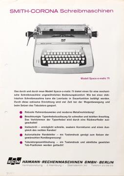 Prospekt für Schreibmaschine Smith-Corona Space-o-matic 75