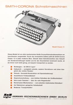 Prospekt für Schreibmaschine Smith-Corona Classic 12