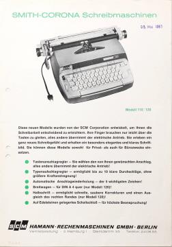 Prospekt für elektrische Schreibmaschine Smith-Corona 110 / 120 mit Datumstempel
