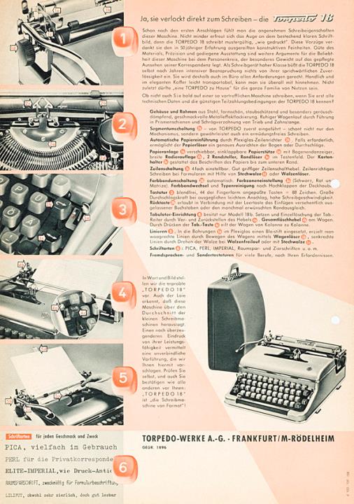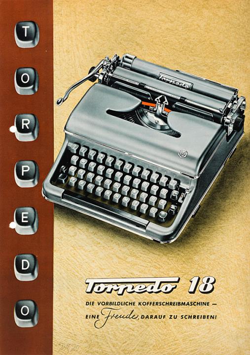 Prospekt für Schreibmaschine Torpedo 18 Die vorbildliche Kofferschreibmaschine - eine Freude, darauf zu schreiben! Nr. d123.100.256