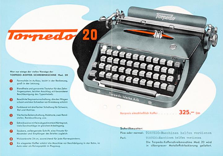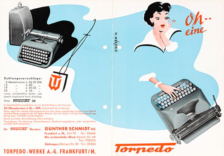 Faltprospekt für tragbare Schreibmaschine Torpedo 20 Grafik: Wekerle