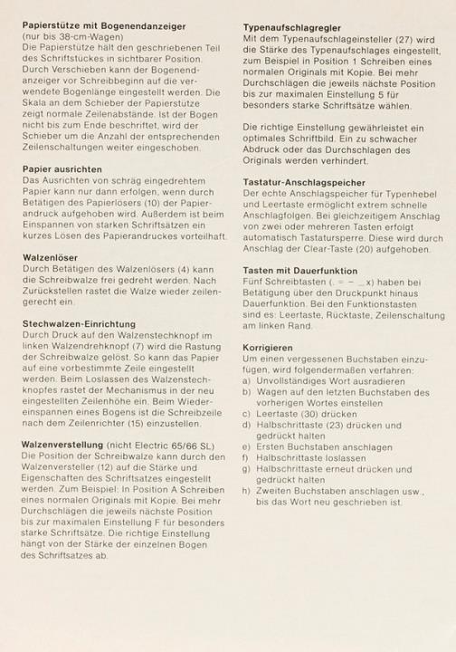 Bedienungsanleitung für elektrische Schreibmaschine Olympia 65/66 Nr. 1/22/040 01