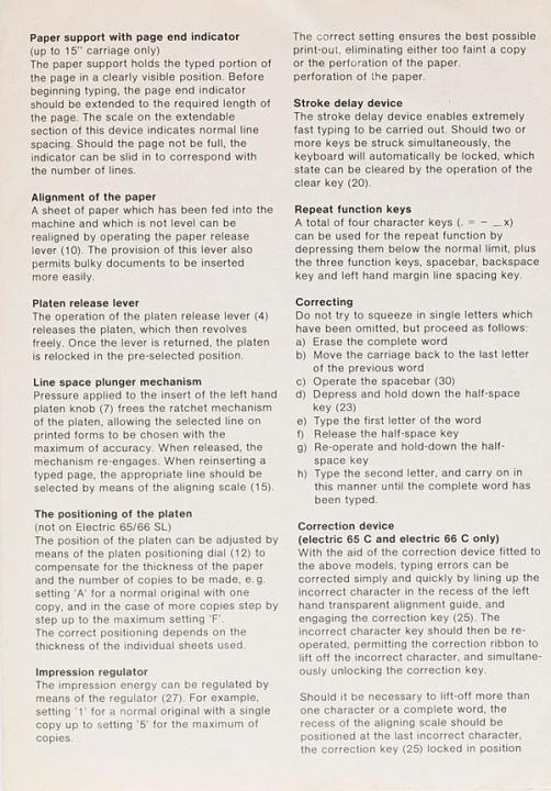 Bedienungsanleitung für elektrische Schreibmaschine Olympia 65/66 Nr. 1/22/040 10