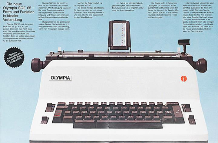 Faltprospekt für Schreibmaschine Olympia SGE 65 Nr. 1/22/009/01