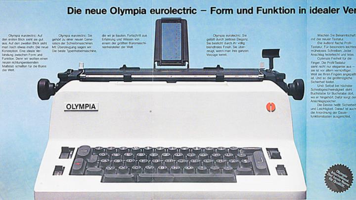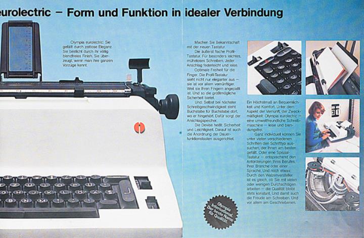 Faltprospekt für elektrische Schreibmaschine Olympia eurolectric Nr. 1/22/009/01