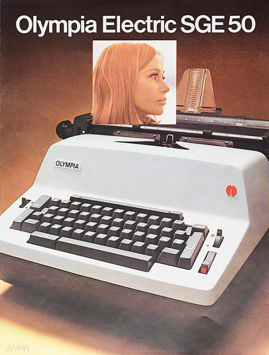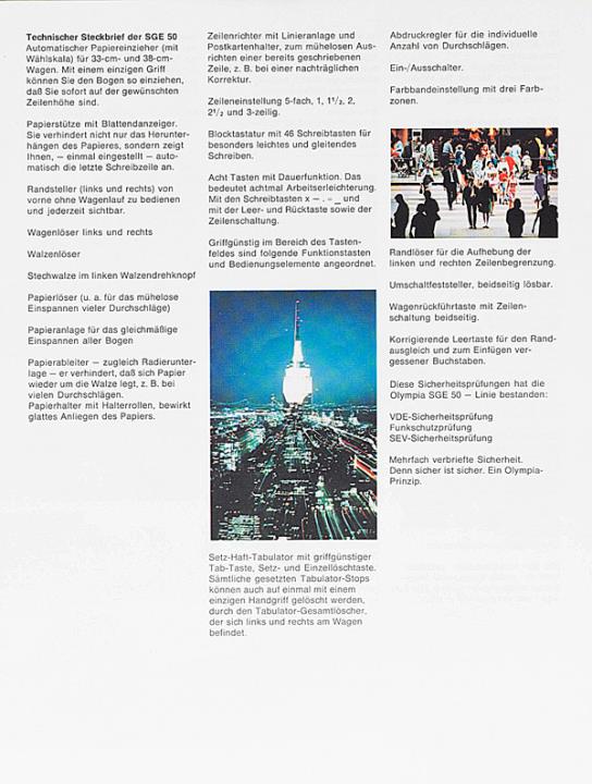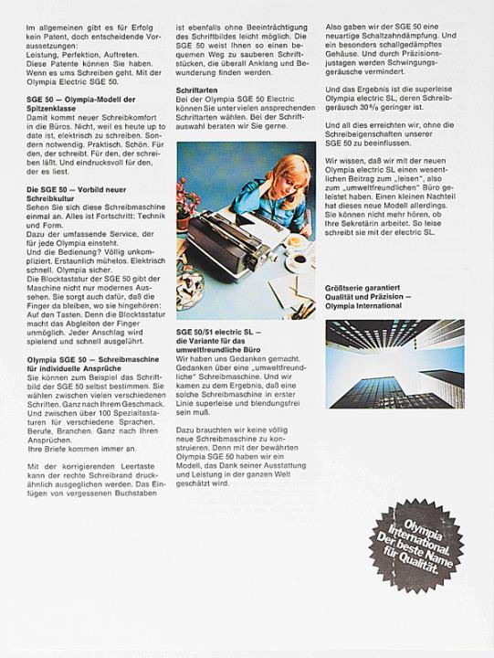 Faltprospekt für elektrische Schreibmaschine Olympia SGE 50 Nr. 1/22/006/01/M
