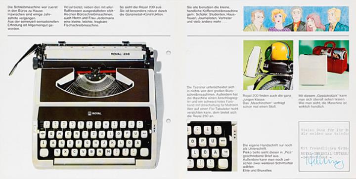Faltprospekt für tragbare Schreibmaschine Royal 200, 250 Nr. 73/11/10/R 200/250/D/1